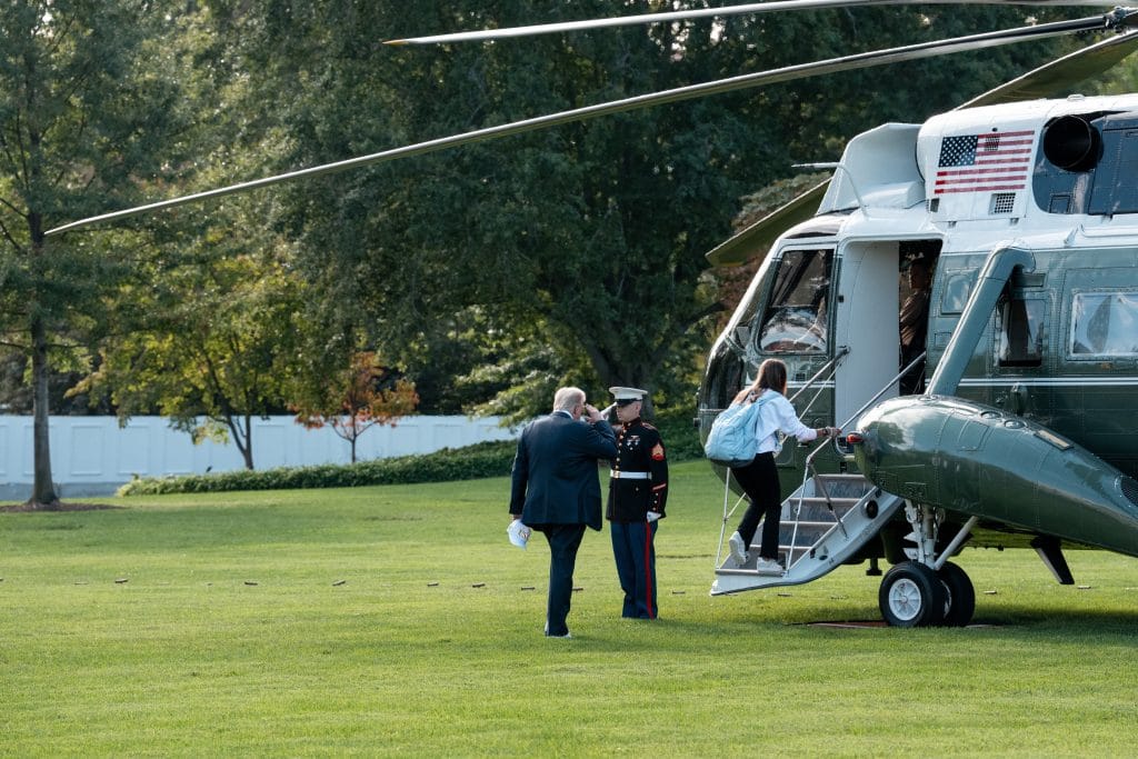The President was accompanied by his granddaughter Kai Trump on the the Marine One flight.